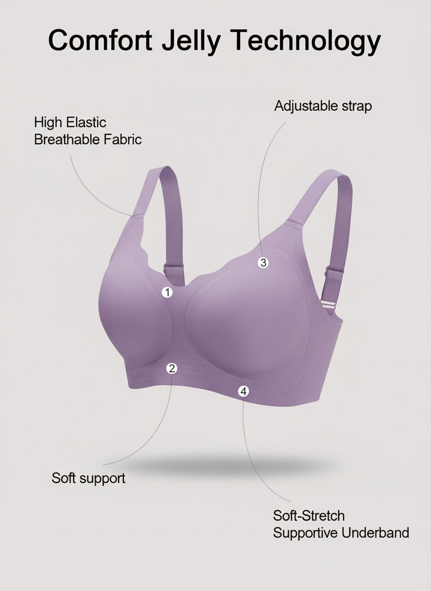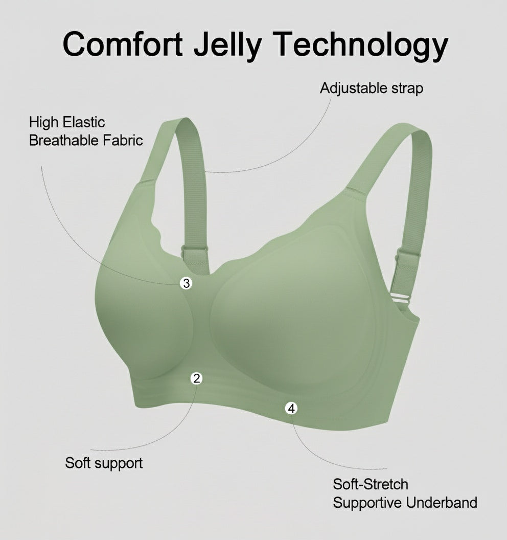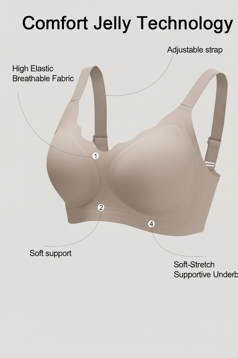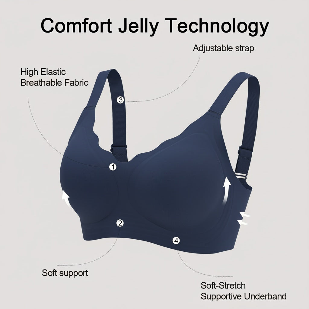 Comfort Jelly underband for soft, steady support. Seamless StayShape cups that flex yet hold form. GlideStraps that never dig in. CoolFlex mesh that breathes. A smooth U-back and 4-way stretch that moves with you. Everything minimal, everything intentional.