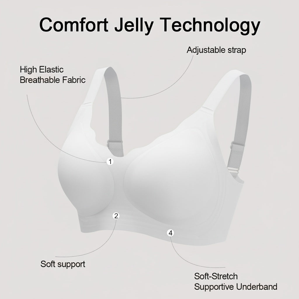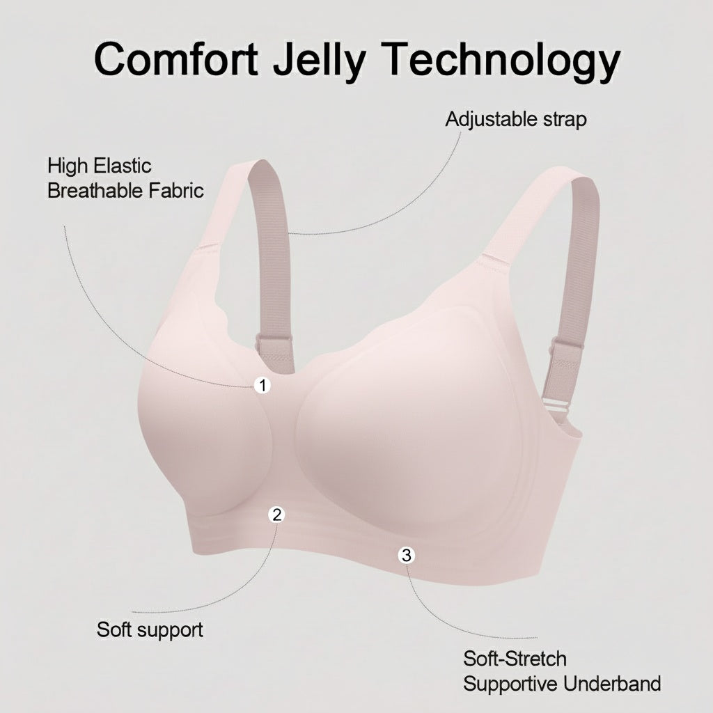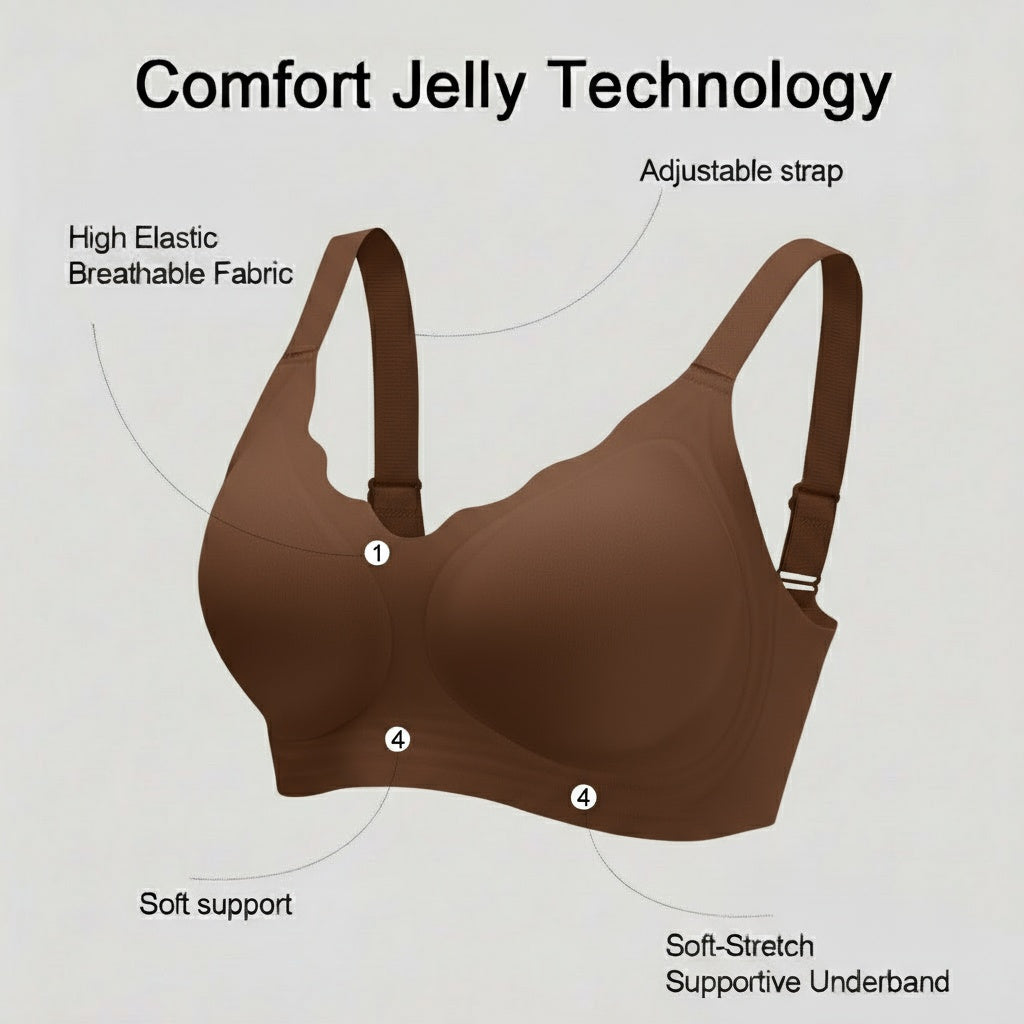 Comfort Jelly underband for soft, steady support. Seamless StayShape cups that flex yet hold form. GlideStraps that never dig in. CoolFlex mesh that breathes. A smooth U-back and 4-way stretch that moves with you. Everything minimal, everything intentional.